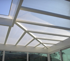 As chapas de policarbonato podem ser curvadas a frio, na obra, conforme a necessidade. Em ambientes internos, proporcionam aumento da iluminação natural, podendo ser usadas em lugar do vidro. Em geral, o policarbonato é utilizado em áreas externas, em coberturas planas ou curvas, como garagens, jardins de inverno, marquises, gazebos, áreas de lazer, estufas e piscinas. Também são encontradas no mercado as placas que refletem a luz solar e reduzem o calor no ambiente.